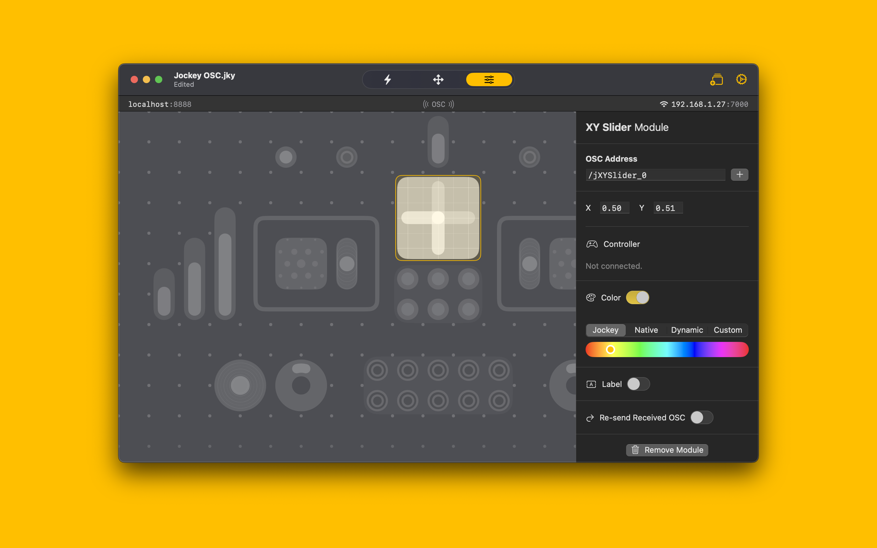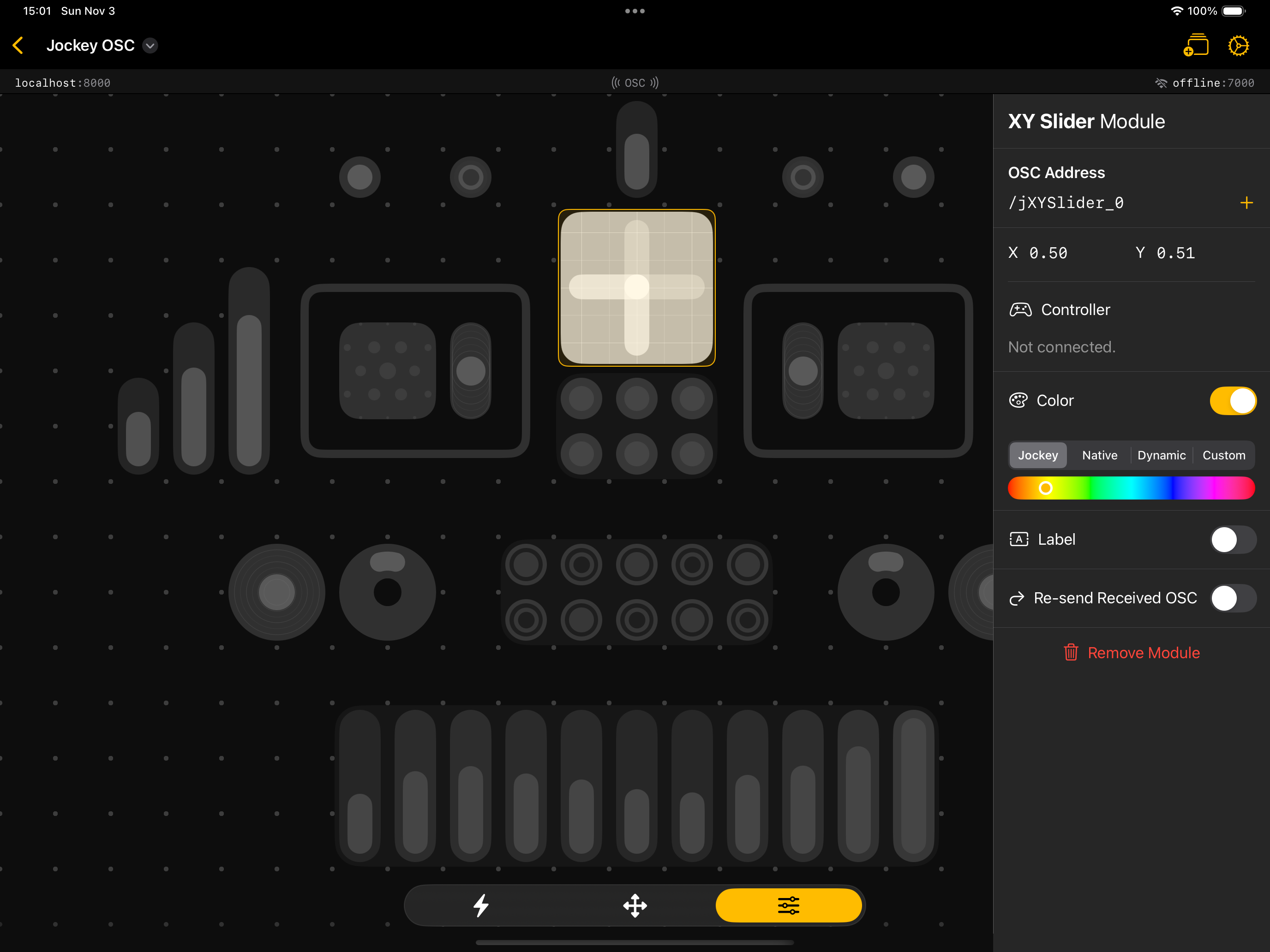 Jockey OSC allows for quick creation of UI interface to send OSC signal to other apps, including Blender 3D. What cool is that the app available covers iOS, iPadOS and MacOS! Love this app!