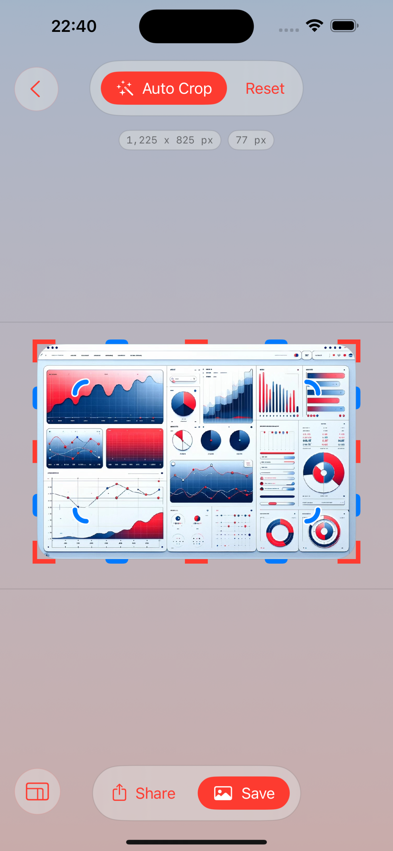 This app does one thing - cropping images with edges/frames - and it does it spectacularly well. The interface's minimal design is clean and straightforward, making it effortless to use. The addition of "Auto Crop" functionality allows for an even faster cropping experience. Although the app is excellent at its job, a few key features are missing that would otherwise elevate it to a 5-star status. For example, incorporating the ability to toggle corner rounding for those who prefer straight edges and enabling users to adjust corner radius would enhance the user experience significantly.